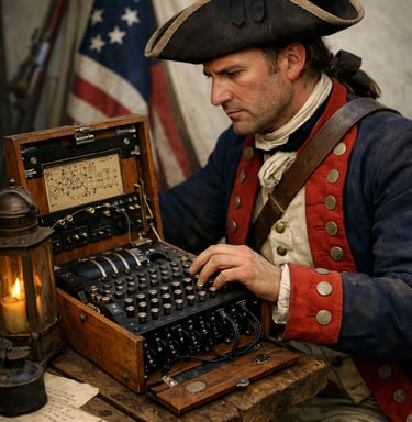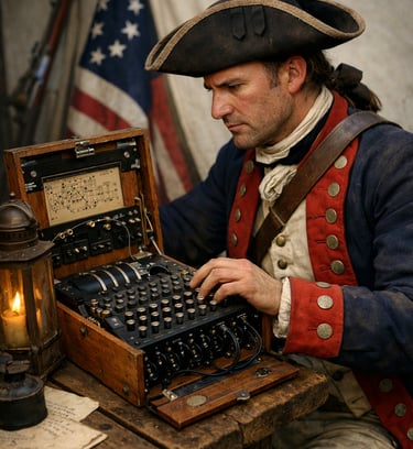 I’m also a longtime fan of Revolutionary War history—and I enjoy mixing that era’s spirit with modern equipment and ideas. The image here is a fun example: a historical-style figure working with a WWII Enigma machine. This site initially took inspiration from the TV show Turn, and although its focus has evolved into cooking, smoking, and firearms, that historical thread still runs through everything I create.
