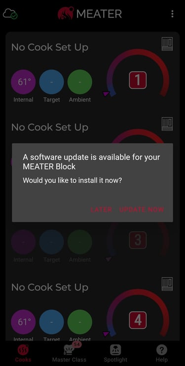 The Meater app also lets you set additional alerts. A couple of alerts I have used in a cook are the "amount of time before the Cook ends" and the "temperature reached before the final temperature." The "amount of time before a Cook ends" alert is extremely helpful, allowing you to start cooking something else, like a side dish.