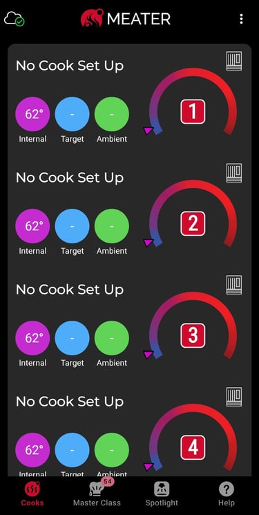 With the Meater app, you set Cooks. Select the probe, food, and preferred doneness (high-level overview). The app will monitor the temperature and, over time, will give you an estimate of when it will be done. Also, it provides the time for the food to rest (if applicable).