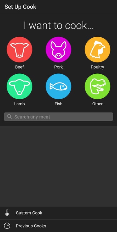 Cooks are configured based on the food (meats, fish) and preferred doneness.