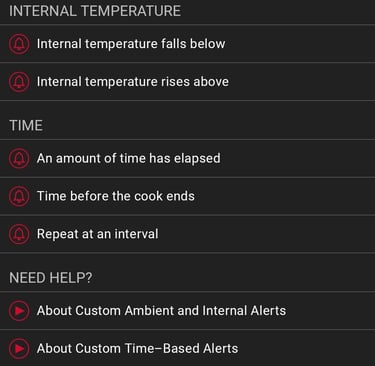 The Thermoworks app allows you to set high and low-temperature alerts but no others.